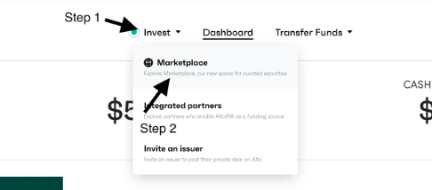 Step 1: Log in to your Alto account and click “Invest” and then “Marketplace” on your main dashboard