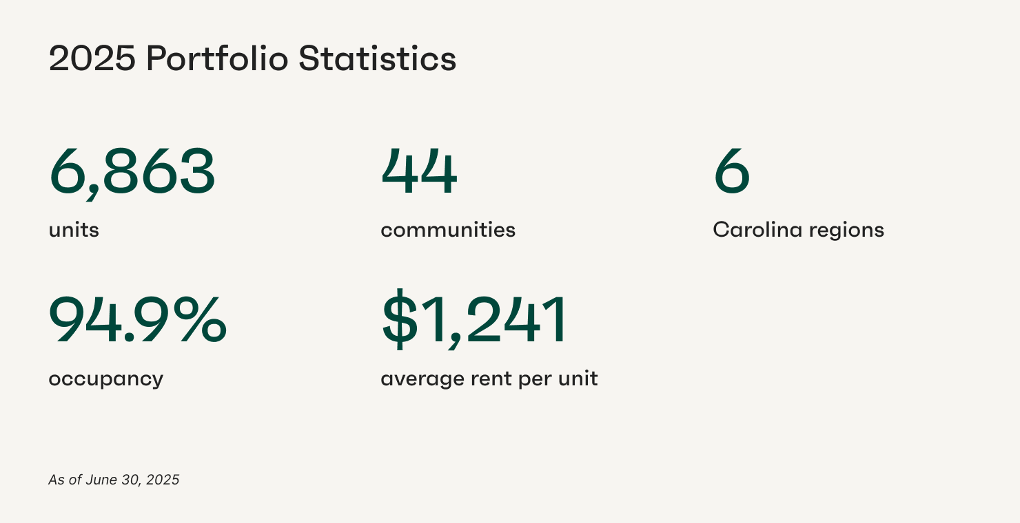The REIT’s portfolio now includes 44 communities totaling 6,863 units across six Carolina sub-markets: Charlotte, Research Triangle, Piedmont Triad, Columbia, Charleston, and Wilmington. Occupancy remains strong at 94.9%, with an average rent of $1,241 per unit and a total asset value of $538.3 million. CNBC has ranked North Carolina as the #1 state for business for two consecutive years, reinforcing the state's economic expansion and demand for rental housing.